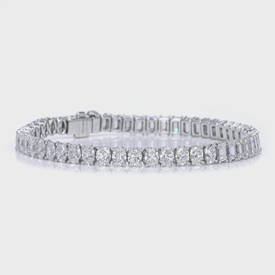 12.63ctw Half Emerald-Cut Half Oval-Cut Diamond Tennis Bracelet in 18K White Gold