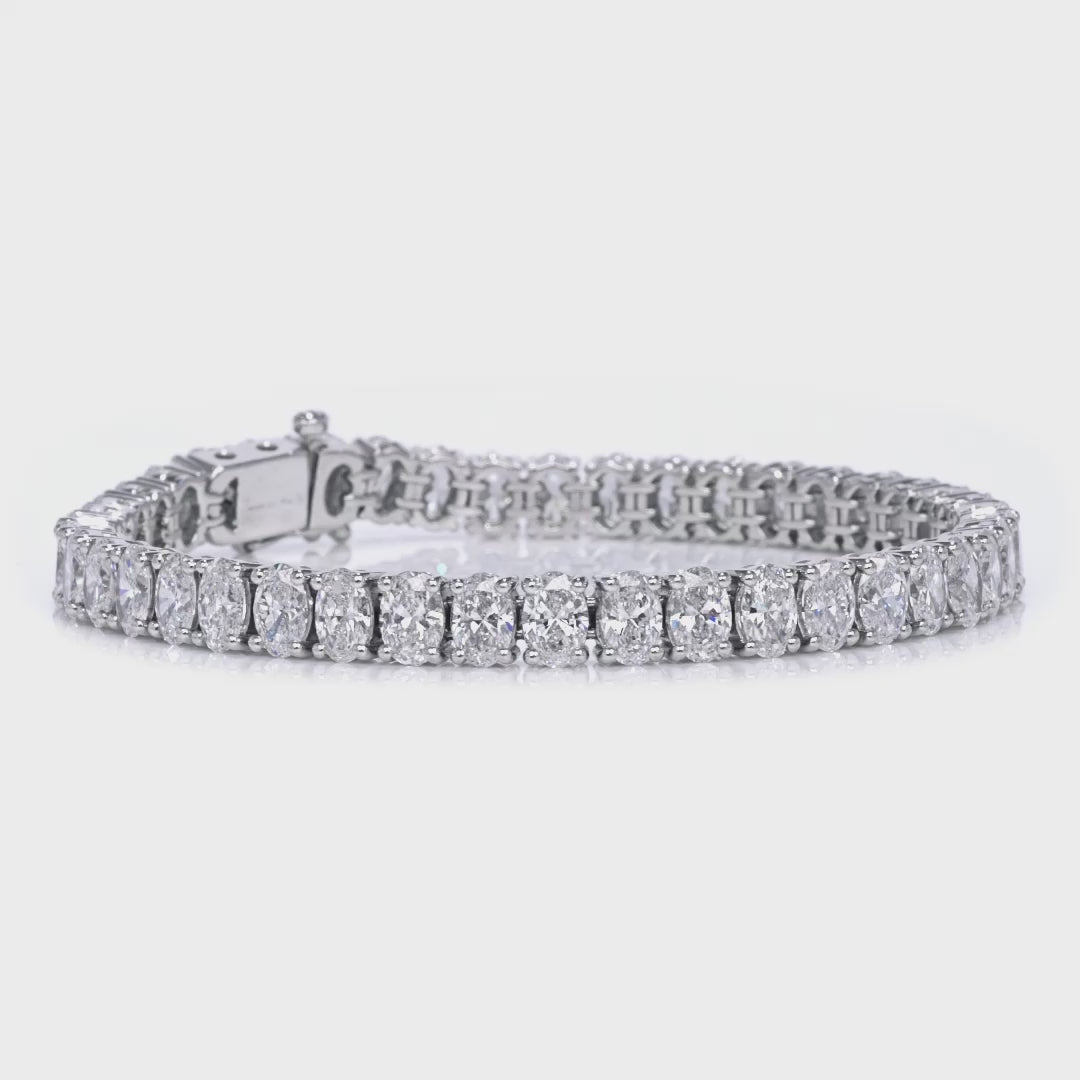 13.46ctw Oval Cut Diamond Tennis Bracelet in 18K White Gold, GIA Certified
