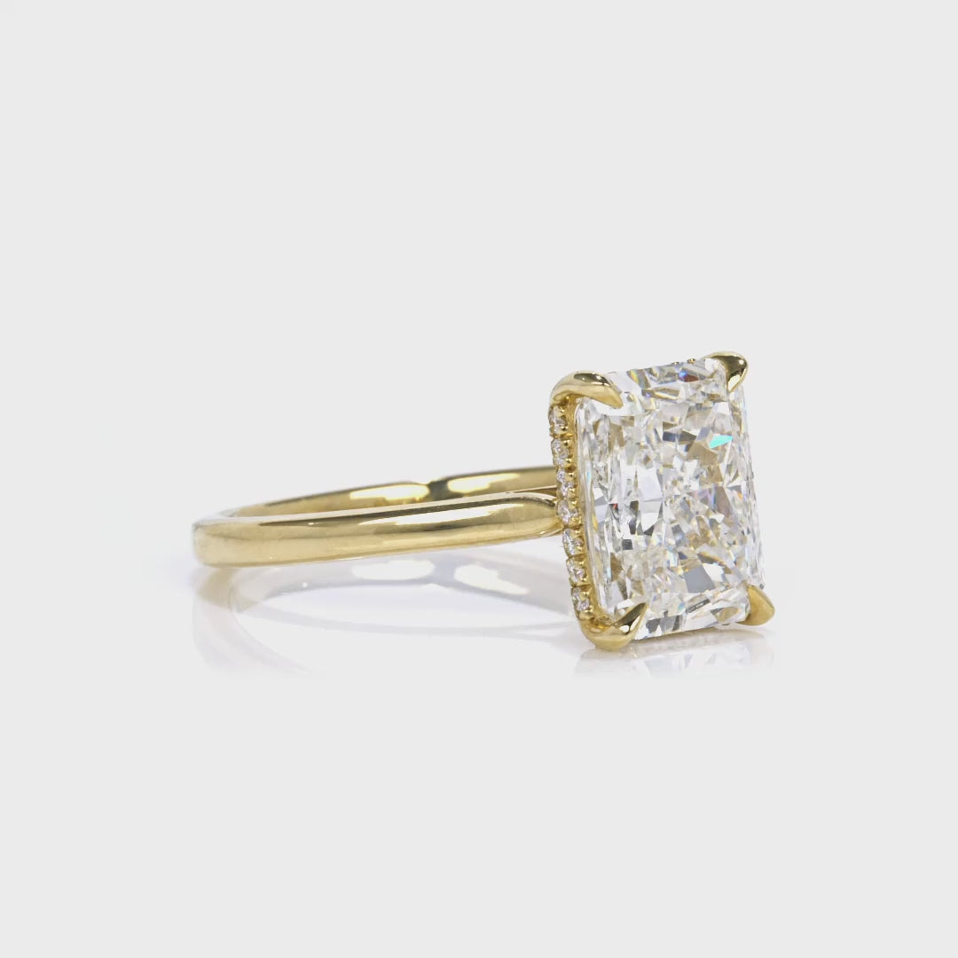 3.14ct Radiant Cut Diamond Hidden Halo Ring in 18k Yellow Gold Band, GIA Certified