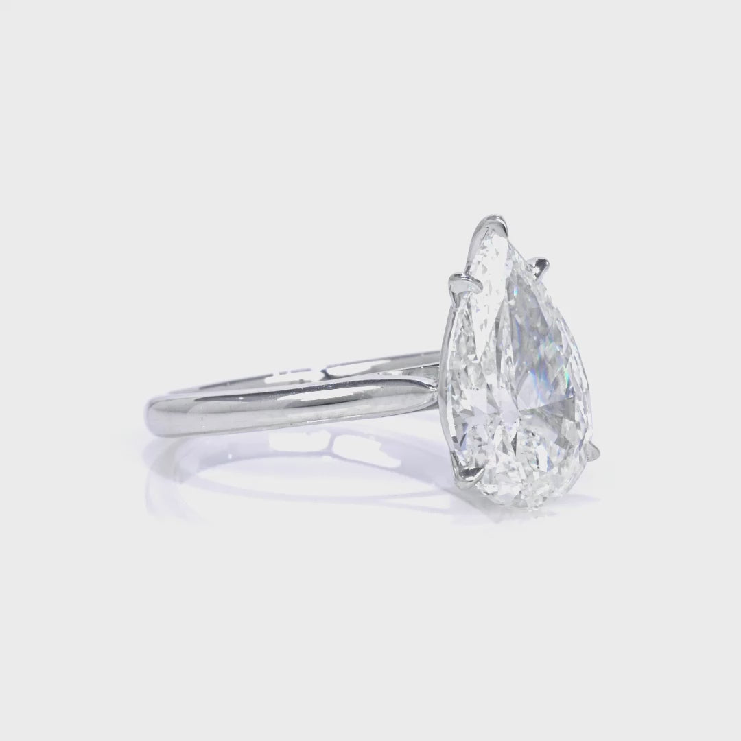 3.15ct Pear Cut Diamond Solitaire Ring in Platinum Band, GIA Certified
