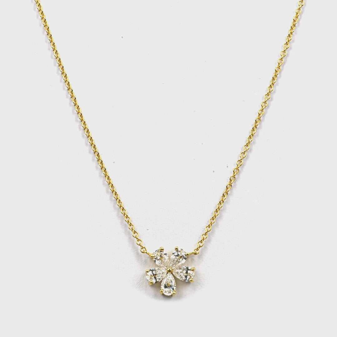 5 Petal Flower Pear Shape Diamond Pendant Necklace in 18K Yellow Gold