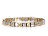Alternating Radiant Cut Fancy Yellow and White Diamond Tennis Bracelet in 18 Karat Yellow Gold and Platinum