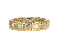 Asscher Cut Bezel Set Yellow Diamond Eternity Band in 18 Karat Yellow Gold