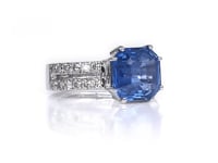 Asscher Cut Blue Sapphire and Diamond Ring in Platinum