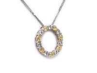 Bright and cheerful, this open circle pendant alternates sunny yellow diamonds with sparkling white diamonds to create a joyful, eye-catching design. The warm golden hues paired with brilliant white stones bring a playful yet sophisticated energy that's perfect for adding a burst of color to your everyday style. Lightweight and versatile, this pendant effortlessly transitions from casual brunches to evening occasions, making it an ideal choice for anyone who loves a touch of sunshine with their sparkle.