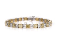 Asscher Cut Alternating Fancy Yellow and White Diamond Tennis Bracelet in 18 Karat Yellow Gold