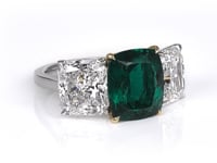 Cushion-Cut Emerald and Diamond Three-Stone Ring in Platinum and 18K Yellow Gold
