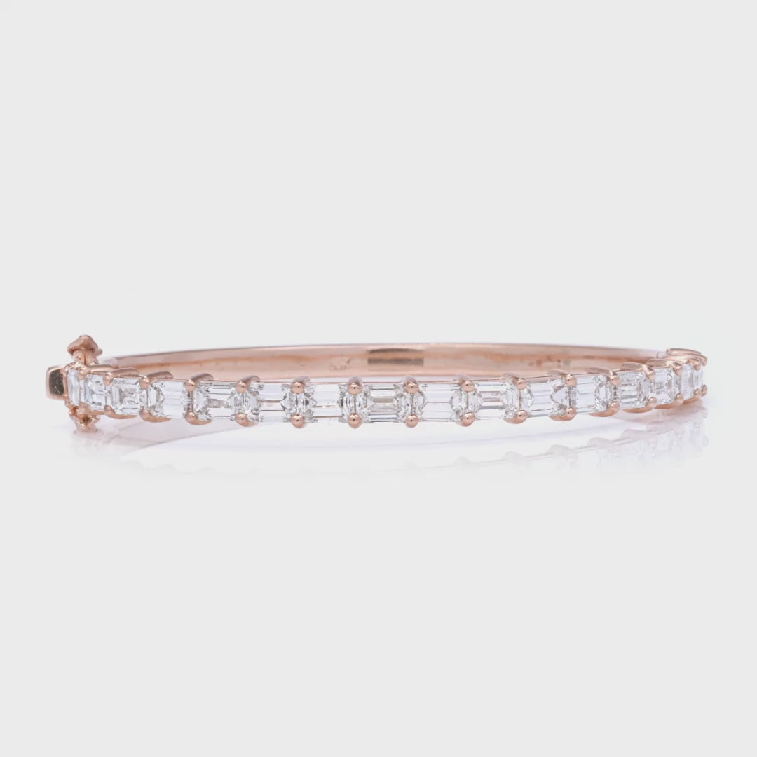 East West Set Emerald Cut Diamond Bangle In 18 karat Rose Gold