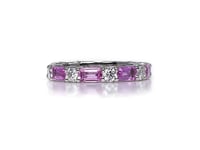 Pink Sapphire and Diamond Eternity Band in 18K White Gold